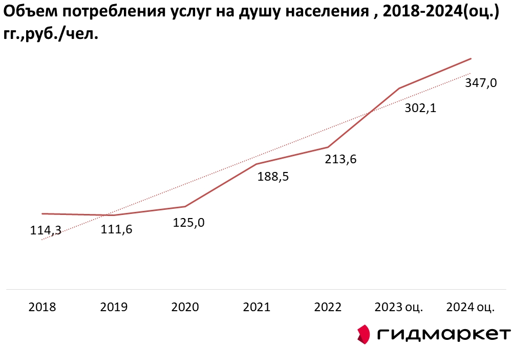 По оценкам аналитиков ГидМаркет, в 2024 году показатель составил 347 руб. на человека, что в 3 раза выше уровня 2018 года.