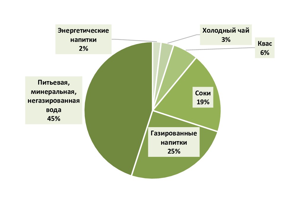 В ходе исследования, проведенного NeoAnalytics на тему «Российский рынок питьевой и минеральной воды: итоги 2024 г., прогноз до 2028 г.», выяснилось, что бутилированная питьевая и минеральная вода является самым большим сегментом в структуре потребления безалкогольных напитков среди россиян (45%). И данная доля будет только расти за счет сокращения потребления сладких газированных напитков.