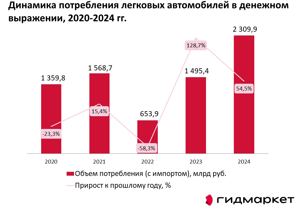 Новые данные Росстата и расчеты компании ГидМаркет позволяют проследить динамику потребления автомобилей в период с 2020 по 2024 годы и оценить ключевые тенденции рынка.