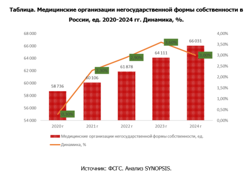 За 2024 год число негосударственных медицинских организации выросло на 3%