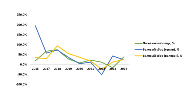 В ходе исследования, проведенного NeoAnalytics на тему «Российский рынок промышленной конопли: итоги 2024 г., прогноз до 2028 г.», выяснилось, что в целом 2024 г. охарактеризовался положительной динамикой таких основных показателей, как посевная площадь, валовый сбор семян и волокон промышленной (технической) конопли.