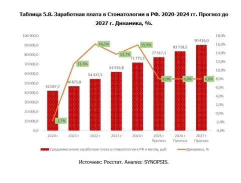 За пятилетний период зарплата в сфере стоматологии увеличилась в 1,7 раз.