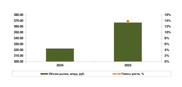 В ходе исследования, проведенного NeoAnalytics на тему «Российский рынок бронежилетов и бронеодежды: итоги 2025 г., прогноз до 2029 г.», выяснилось, что по итогам 2025 г., по расчетам NeoAnalytics, объем рынка бронежилетов и бронеодежды в России составлял около 370 млрд. руб., тем самым, за год рынок вырос на 13,8%. С 2023 г. наблюдалось ускорение темпов роста (до 13-15%).