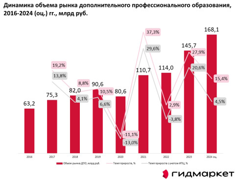 Рынок ДПО в 2024 году достиг 168,1 млрд рублей, демонстрируя переход от восстановительного роста к фазе стабилизации