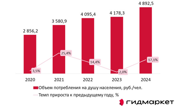 Объем потребления полиграфических услуг вырос до 4 892 рублей, отражая рост спроса и цифровизацию отрасли